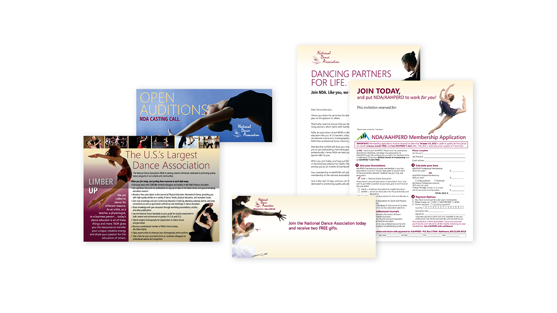 Direct Marketing membership packages. Includes brochure, liftnote, buckslip, sticker, letter, and membership form.