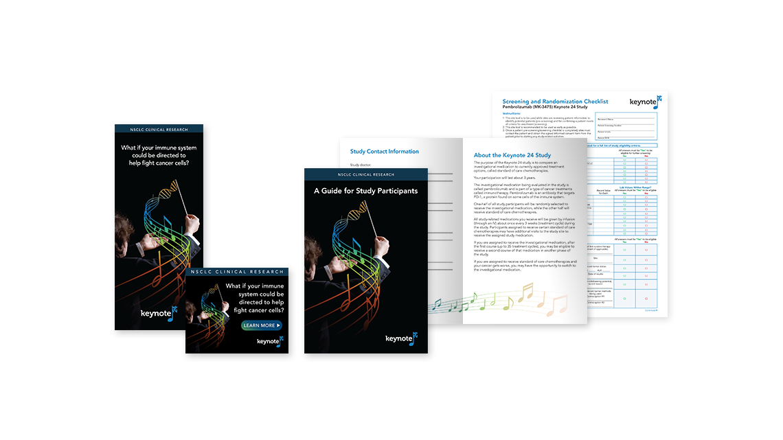 Keynote was a non-small cell lung cancer (NSCLC) study. Objective was to maintain engagemet and enhance screening volume against a very high screen-fail rate (88%). Enrollment was completed on schedule despite unusually high SFR, fatigued sites, and relatively low site participation in outreach.